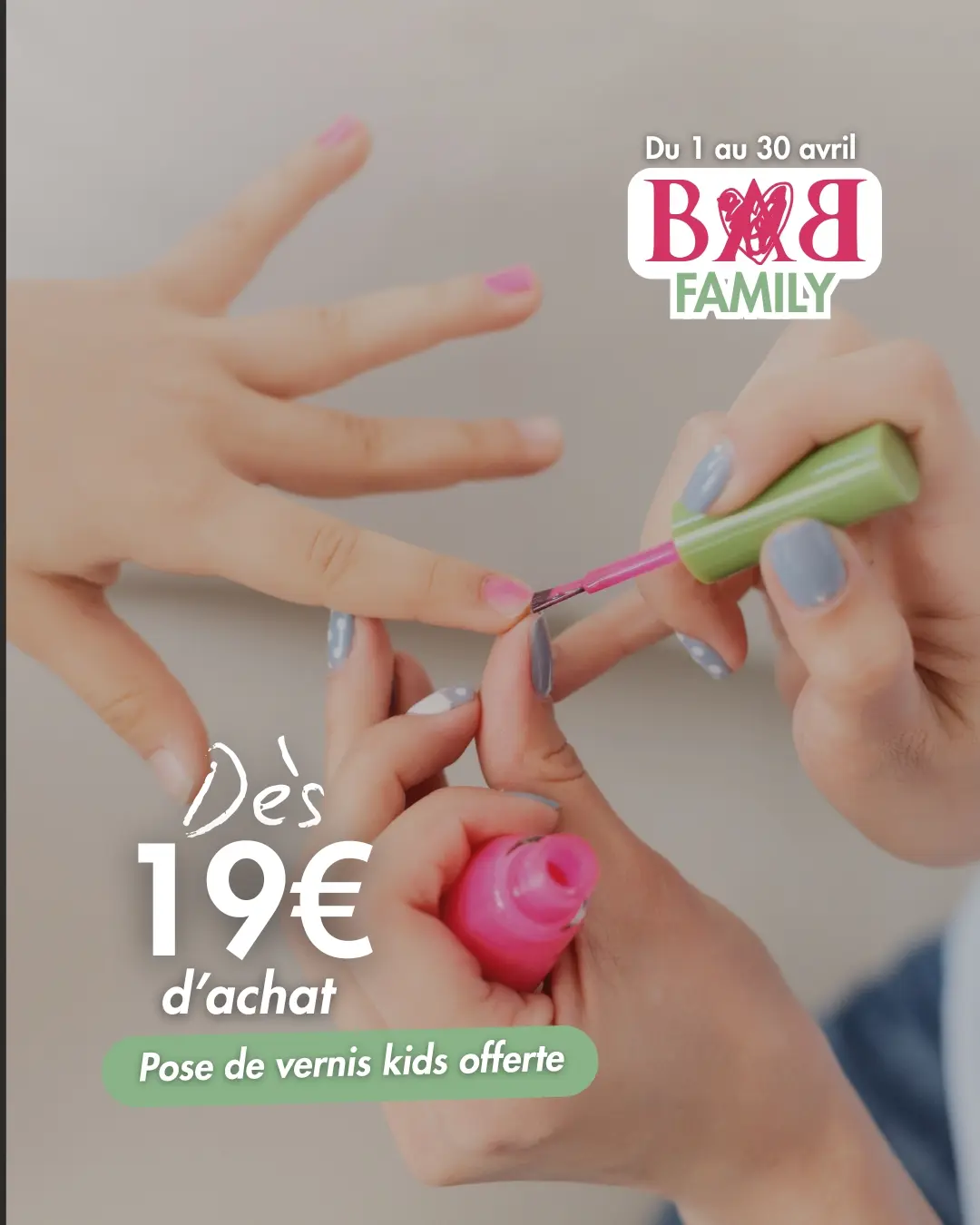 Pose de vernis kids est offerte dès 19€ d’achat !