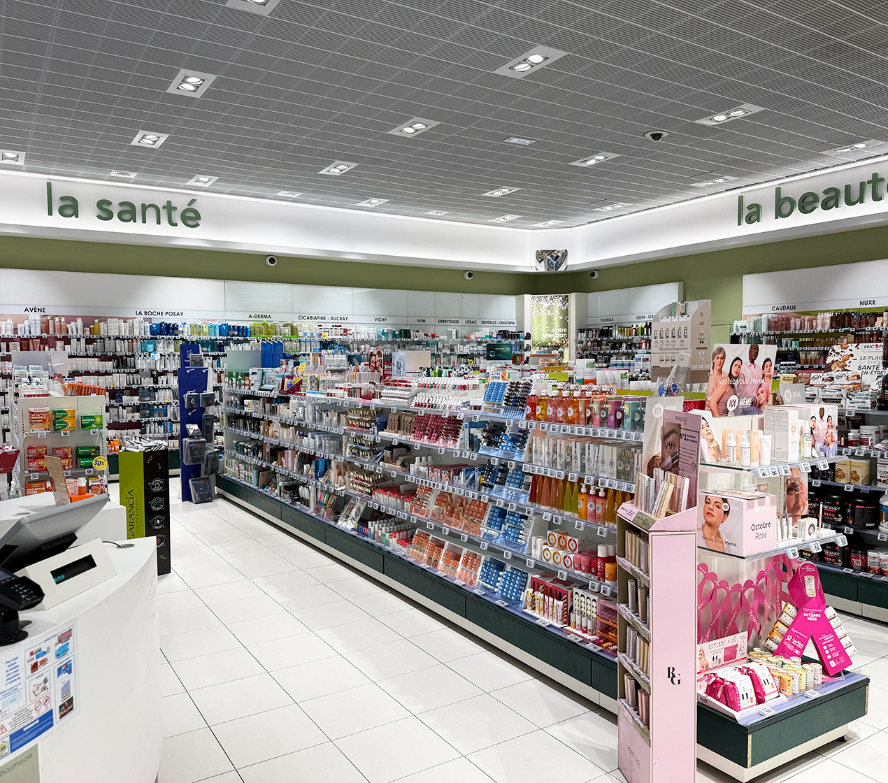 Votre Parapharmacie E. LECLERC se situe en face de la ligne de caisse.