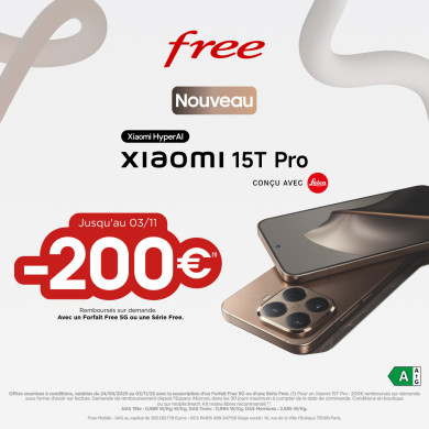 Découvrez dès aujourd'hui les nouveautés Xiaomi 15T et 15T Pro. En plus, bénéficiez de 200€ remboursés sur le 15T Pro.